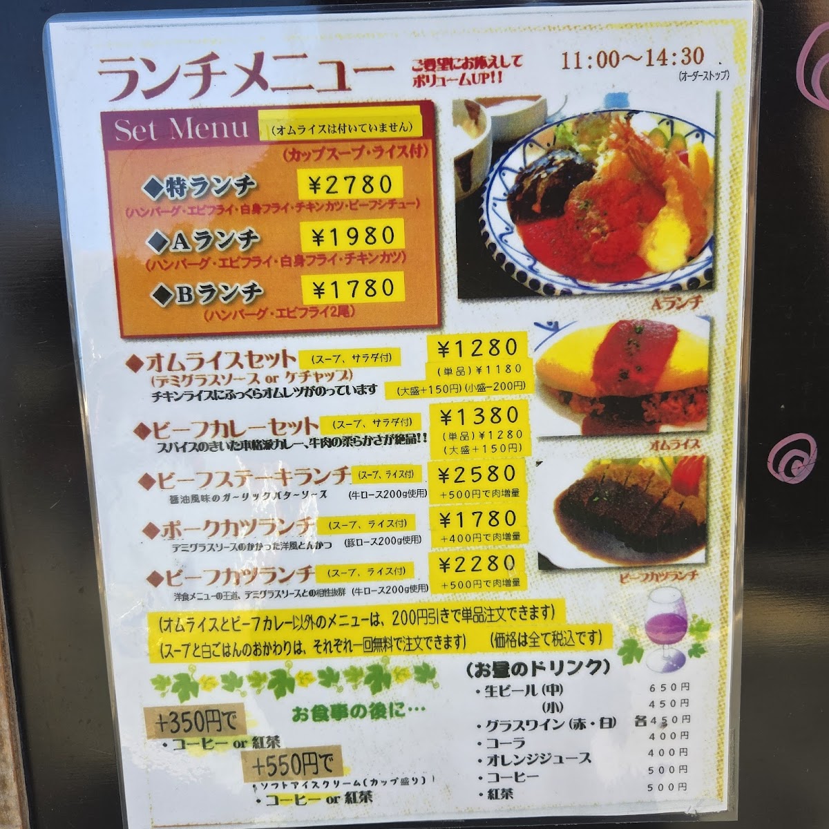 For those who enjoy a twist on the traditional omelette rice, the オムライスを開いてみました (Omelette Rice Opened) presents a fun and creative version of the classic dish, where the omelet is served open-faced, allowing for a visual feast as well as a flavorful one. If you’re feeling extra hungry, the オムライスセット 大盛 (Omelette Rice Set Extra Large) ensures you leave satisfied with its generous portion.