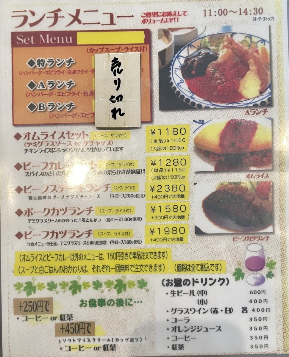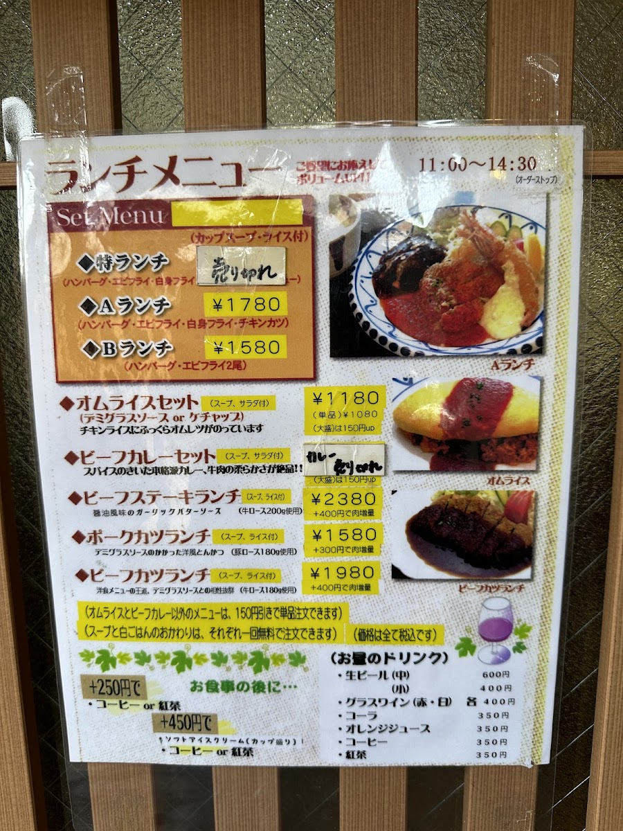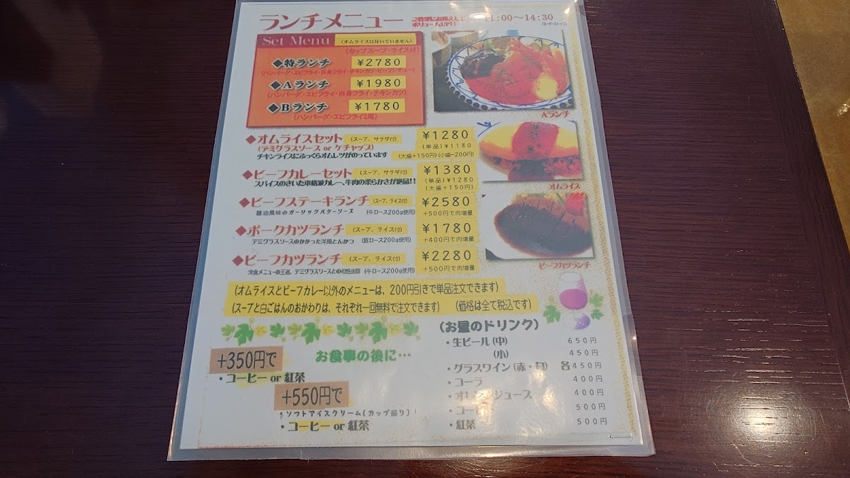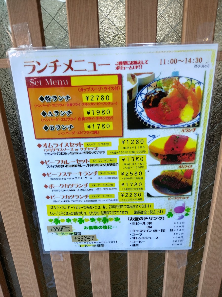 Yukitei Nara offers a delightful selection of dishes, each crafted to satisfy various tastes, with an emphasis on Japanese and Western fusion cuisine. Among the standout offerings is the オムライスセット デミグラスソース (Omelette Rice Set with Demi-glace Sauce), a comforting and hearty dish that combines fluffy rice wrapped in a savory omelet, topped with a rich demi-glace sauce. For those looking for a more substantial meal, the 特ランチ (Special Lunch) provides an excellent option, featuring a variety of carefully prepared dishes that promise a fulfilling experience.